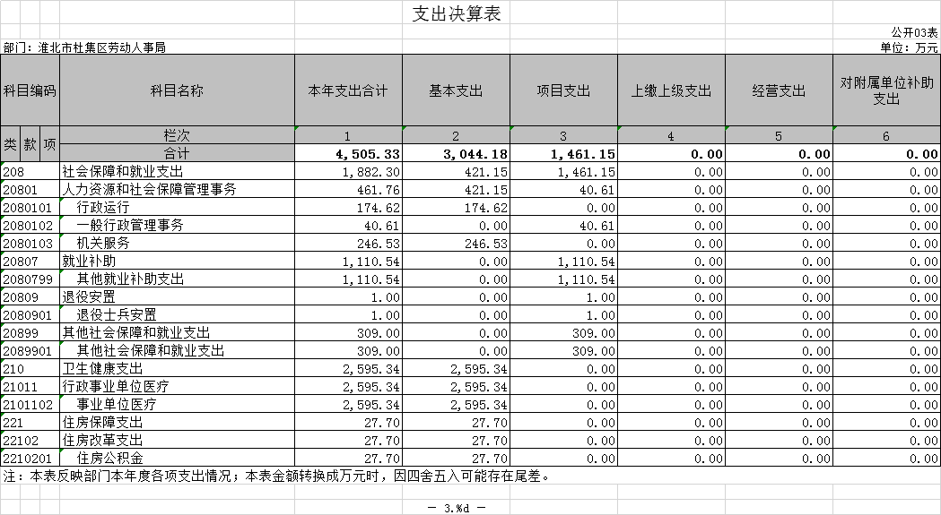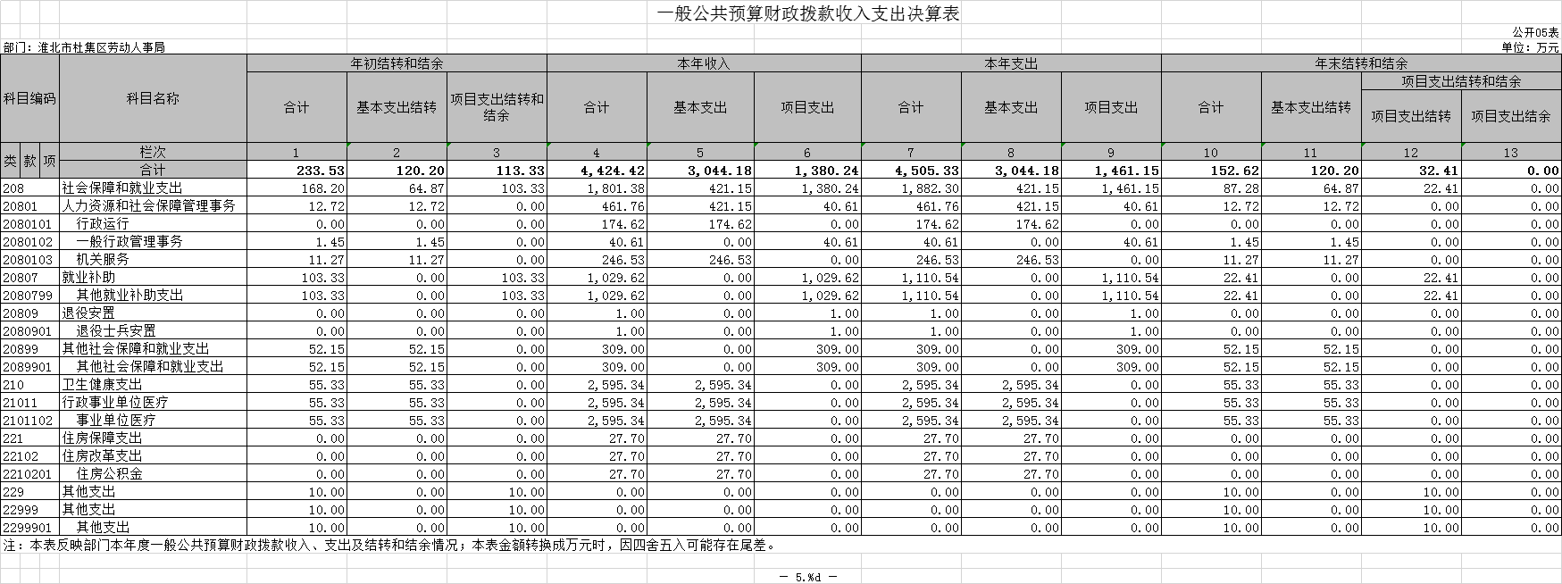 | 部门:淮北市杜集区劳动人事局 | 单位:万元 | |||||||||||||||