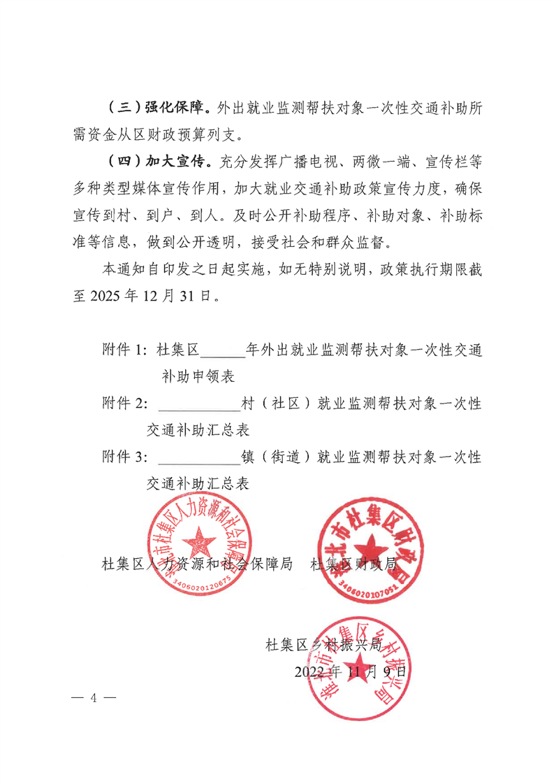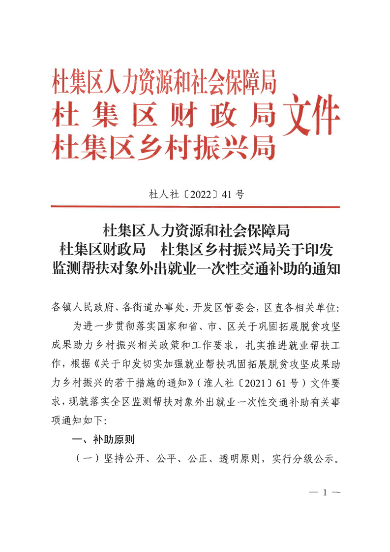 杜集区人力资源和社会保障局杜集区财政局杜集区乡村振兴局关于印发监测帮扶对象外出就业一次性交通补助的通知