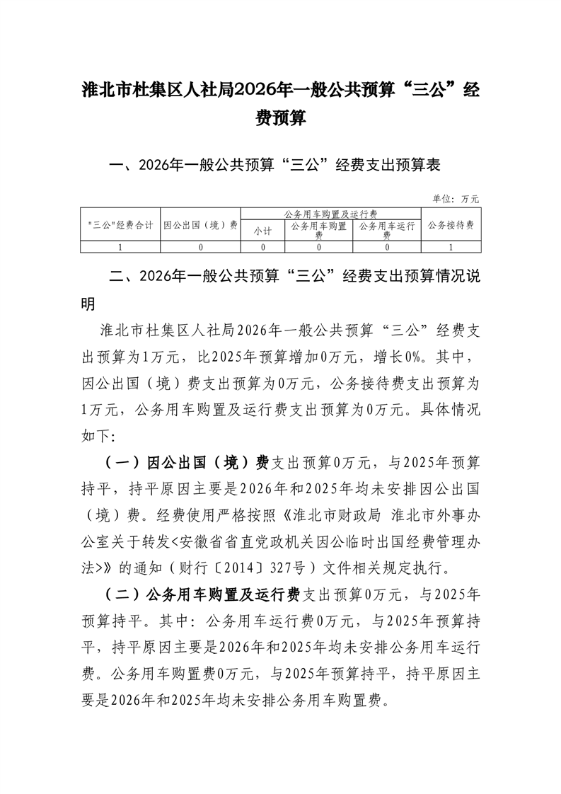 杜集区人社局2026年一般公共预算“三公”经费预算