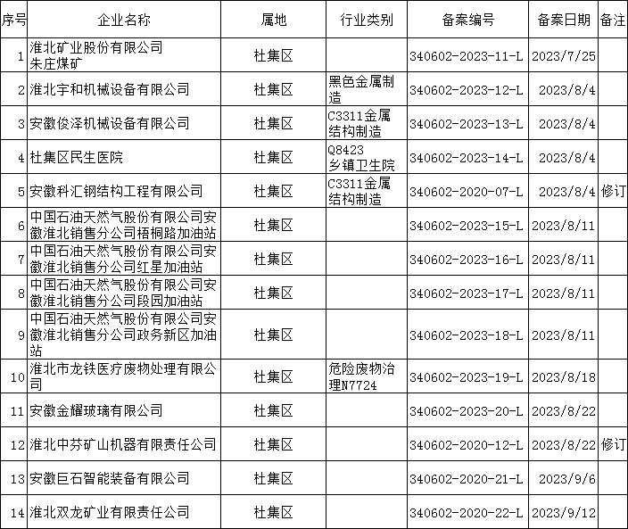 2023年第三季度企业应急预案备案统计表
