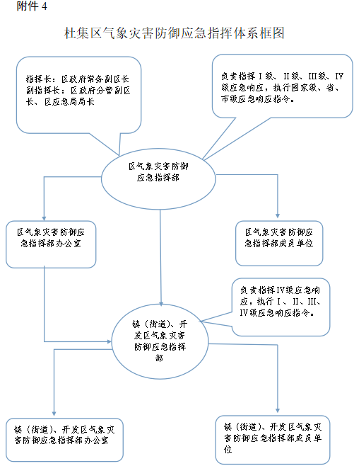 成立区气象灾害防御应急指挥部(以下简称区指挥部),统一领导和指挥气象灾害及其次生、衍生灾害的应急处置工作。