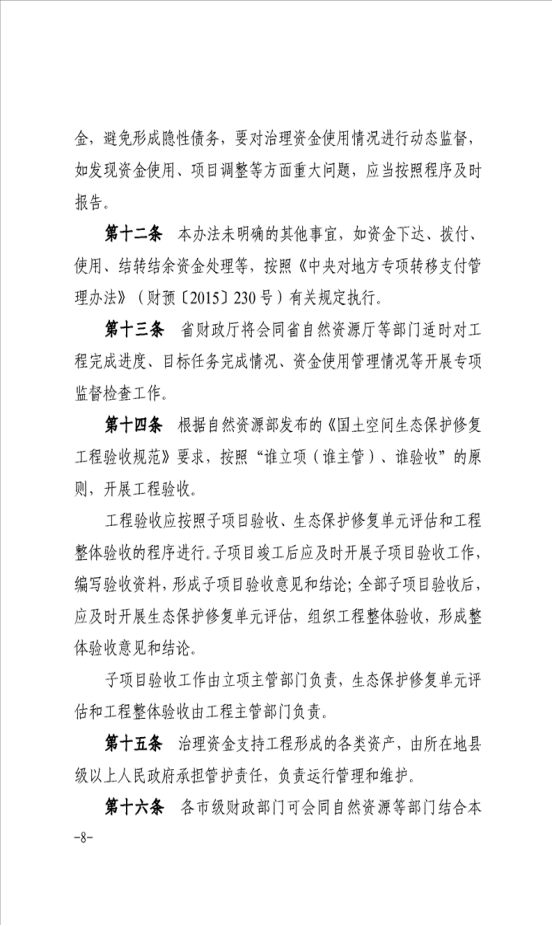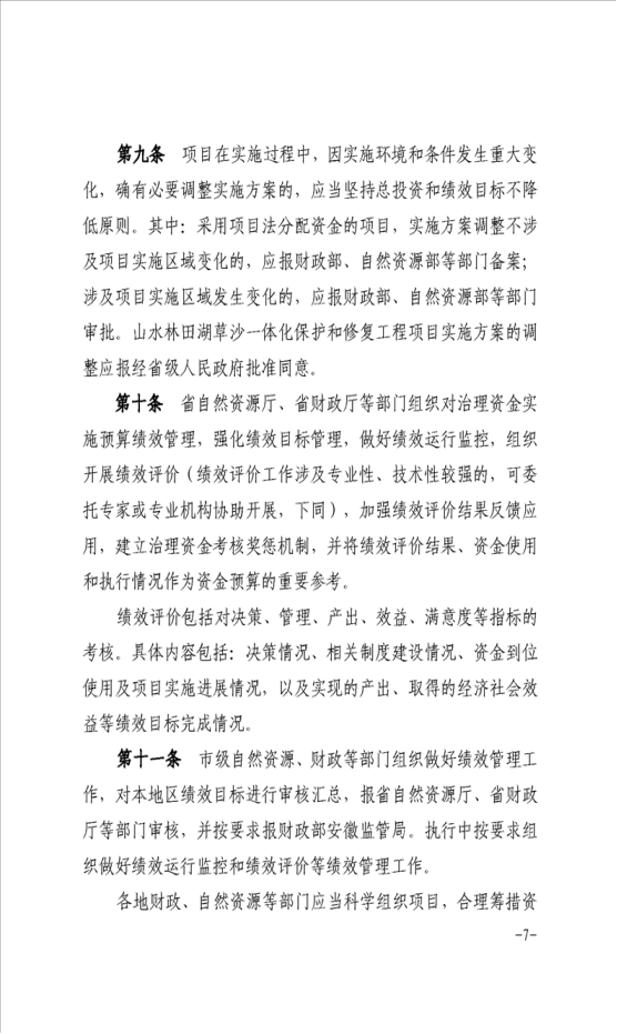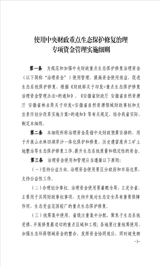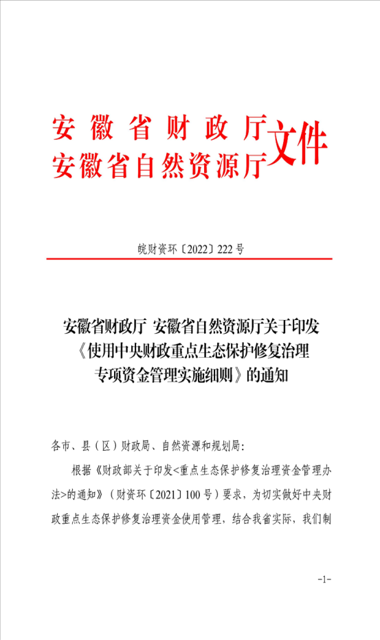 安徽省财政厅安徽省自然资源厅关于印发《使用中央财政重点生态保护修复治理专项资金管理实施细则》的通知