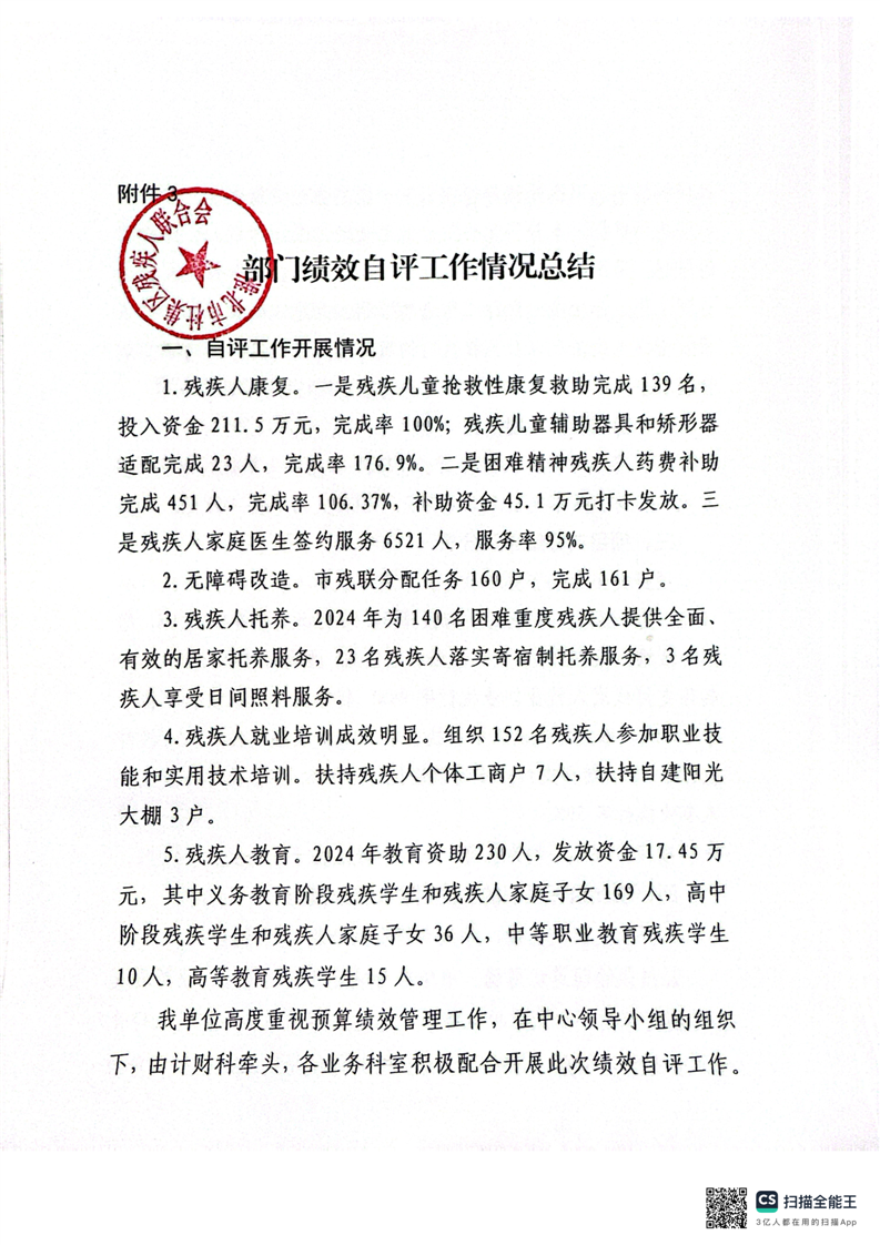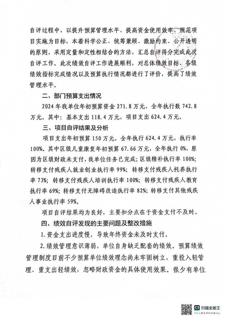 杜集区残疾人联合会2024年度项目支出绩效自评表