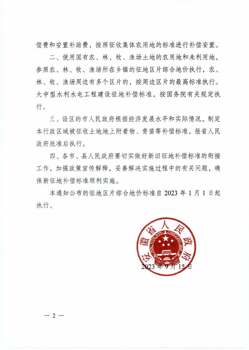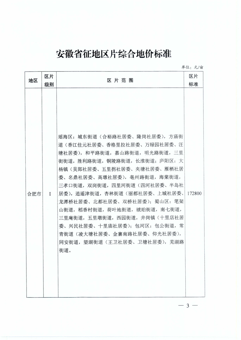 安徽省人民政府关于公布全省征地区片综合地价标准的通知【乡镇沿用】
