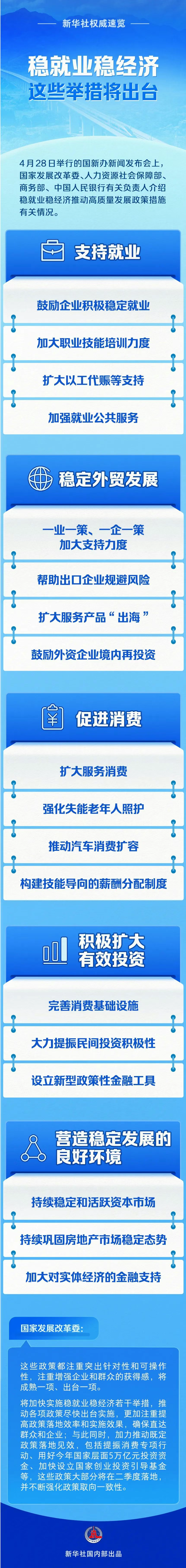 赵辰昕表示,我们还有丰富的政策储备和充分的政策空间,将加快实施稳就业稳经济若干举措,确保直达群众和企业;与此同时,加力推动既定政策落地见效,包括提振消费专项行动、用好今年国家层面5万亿元投资资金、加快设立国家创业投资引导基金等,这些政策大部分将在二季度落地,并不断强化政策取向一致性。