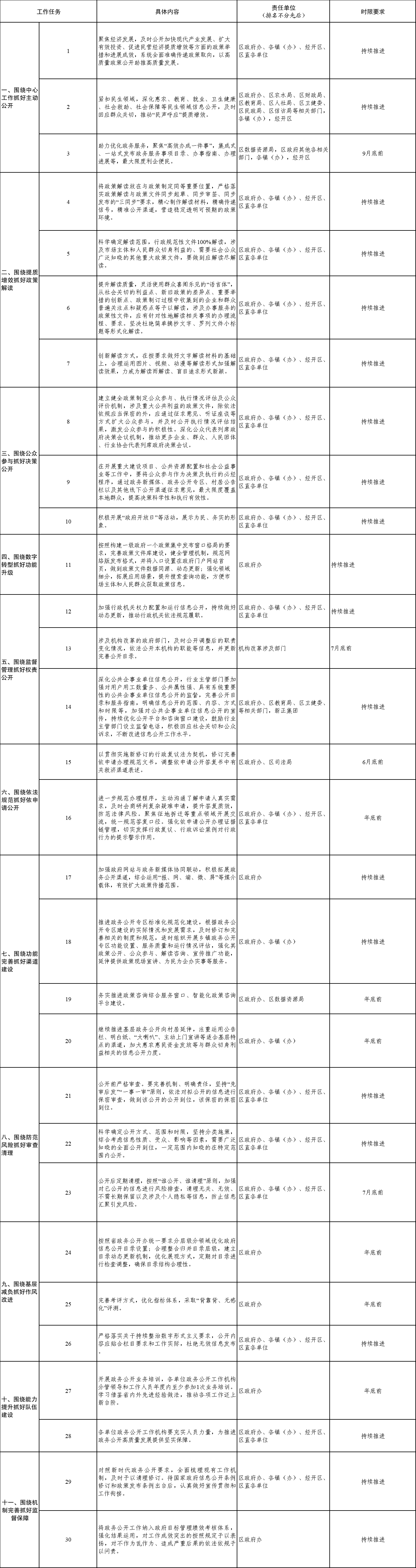 杜集区2024年政务公开重点工作任务分工