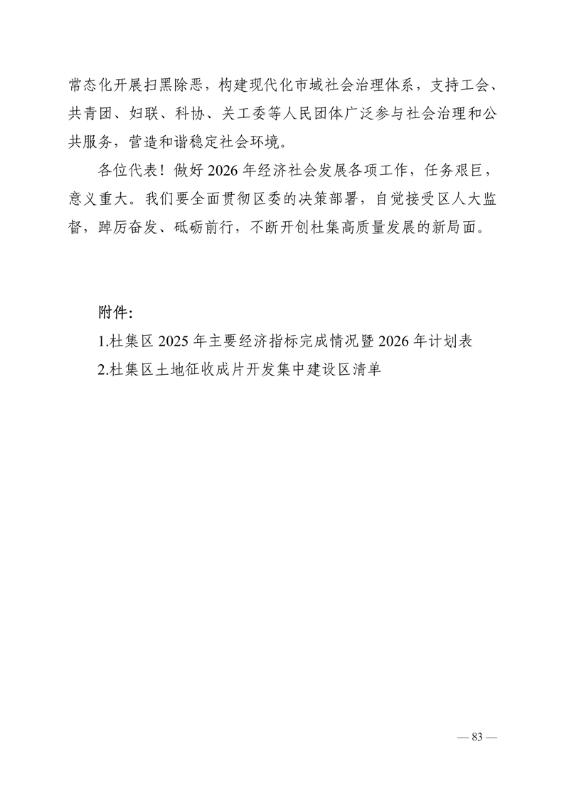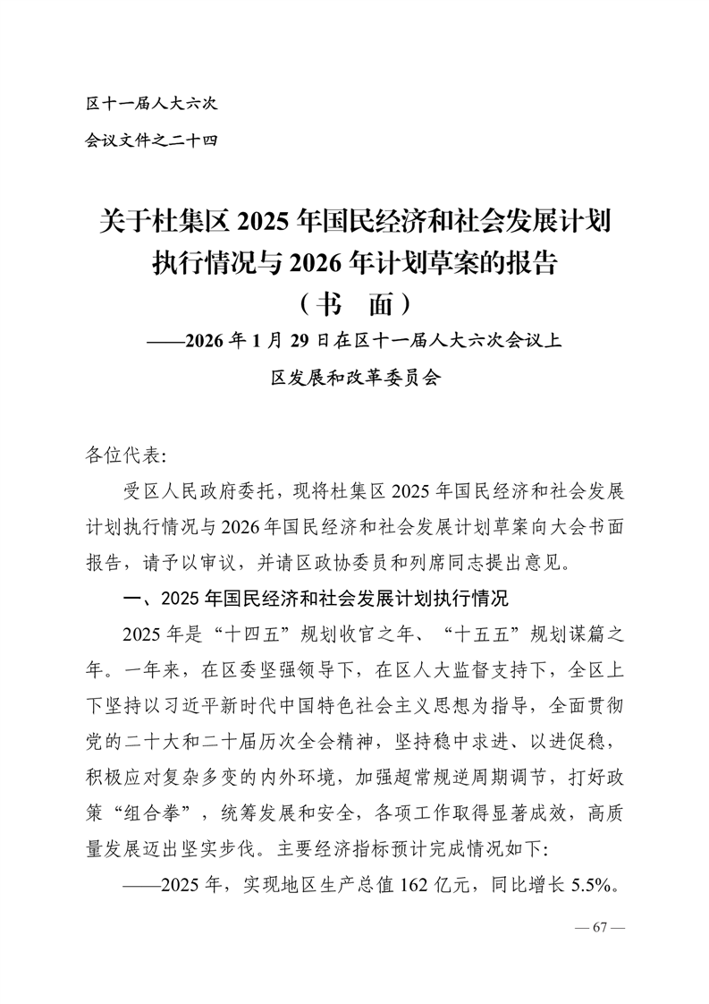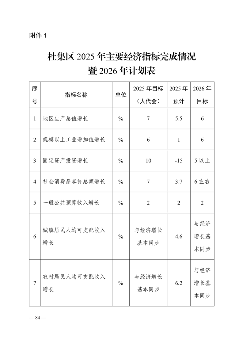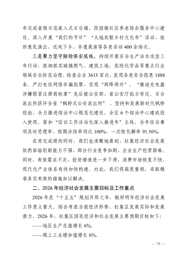 杜集区2025年国民经济和社会发展计划执行情况与2026年计划草案报告