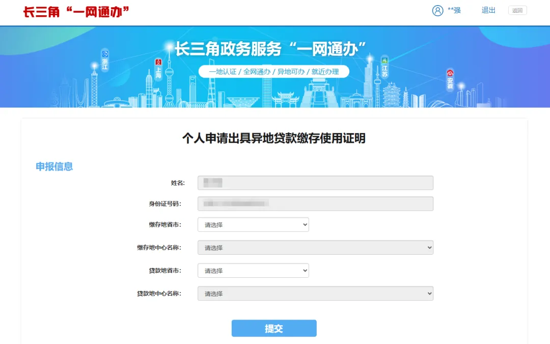 填写申报信息,注意正确选择缴存地中心和贷款地中心,点击“提交”后,显示“提交成功”,表明申请开具完成。