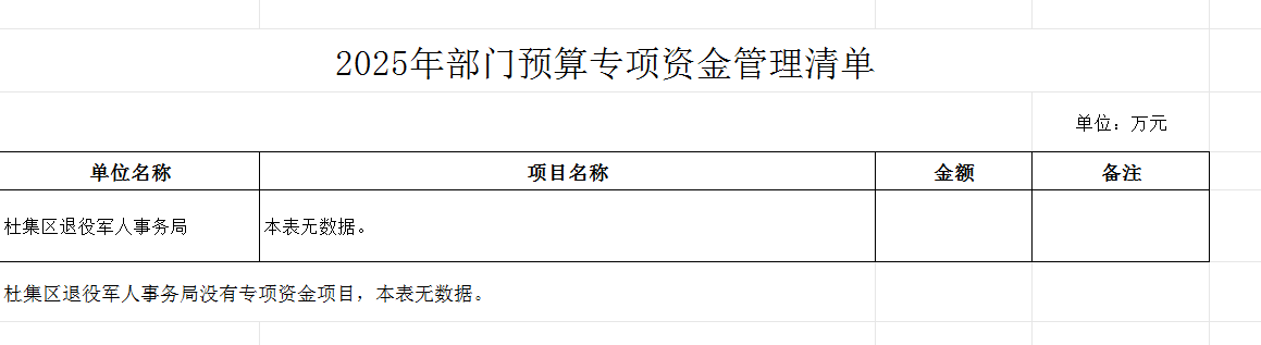 杜集区退役军人事务局2025年部门预算专项资金管理清单