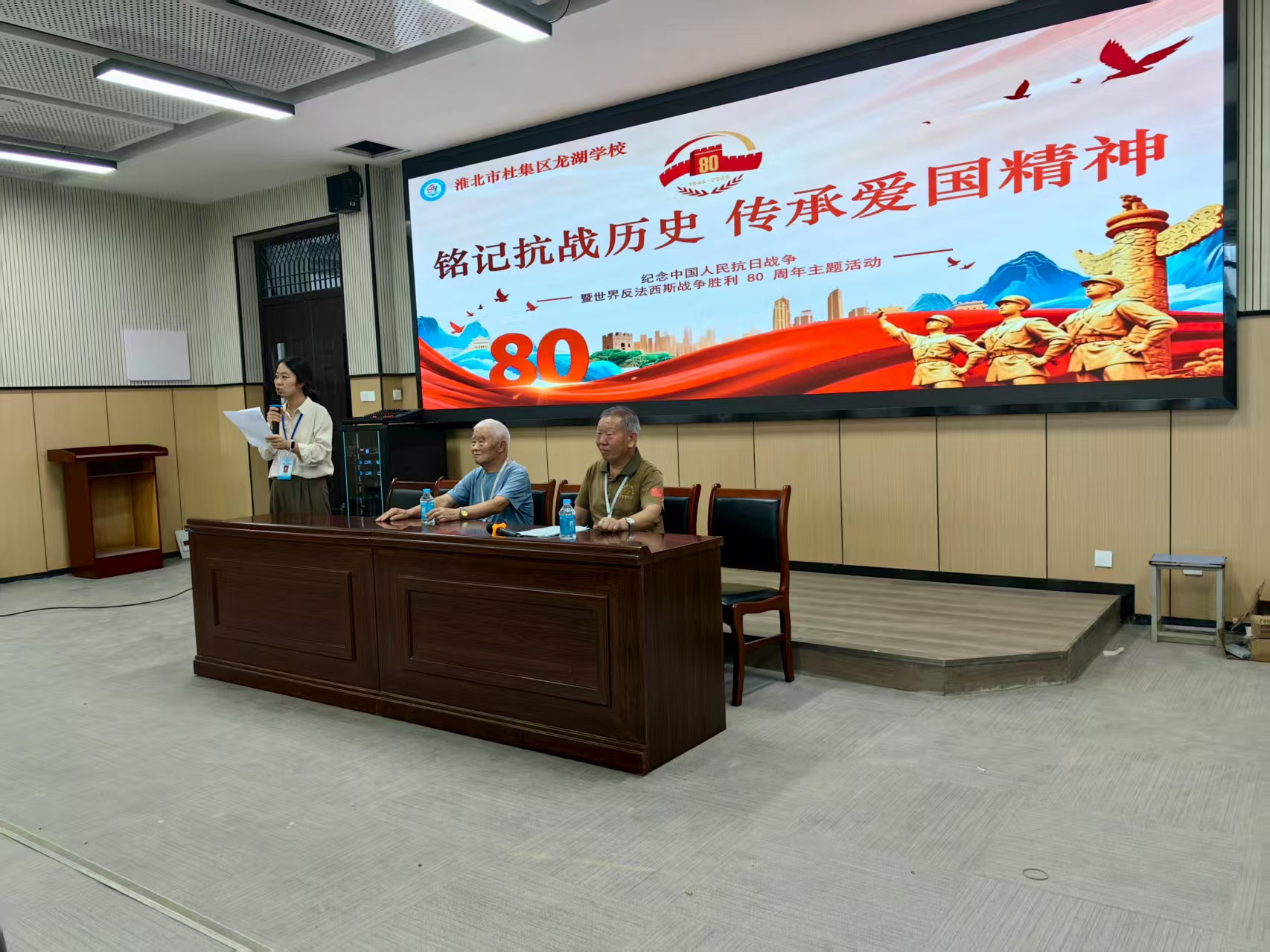 矿山集街道龙湖学校纪念中国人民抗日战争暨世界反法西斯战争胜利80周年开展老兵讲红色故事活动。