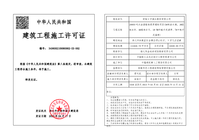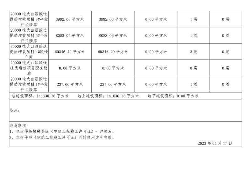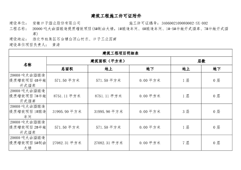 20000吨大曲酒酿造提质增效项目建筑工程施工许可证