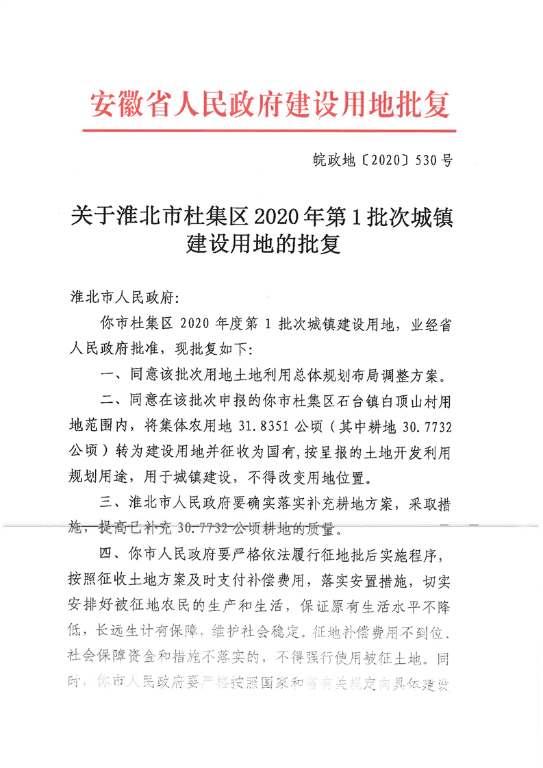 关于淮北市杜集区2020年第1批次城镇建设用地的批复