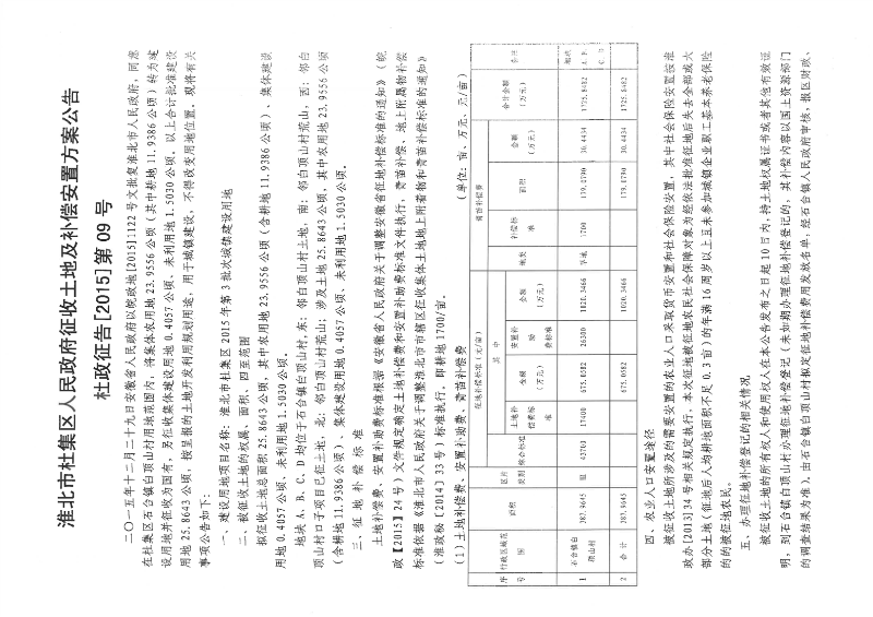 淮北市杜集区人民政府征收土地及补偿安置方案公告