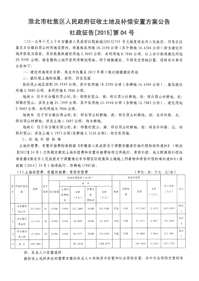 淮北市杜集区人民政府征收土地及补偿安置方案公告