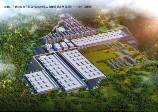 项目位于淮北市杜集区石台镇口子产业园一期项目南侧,占地近700亩,投资13.6亿元。主要建设内容包括制曲、酿酒、储存三大工艺。该项目拟筹建4栋酿造车间,共60跨智能化酿造生产线;制曲车间共12栋,曲房1120间,曲库6万平米;基酒库共8栋,储酒能力达9.4万吨。2020年5月16日,项目开工建设。