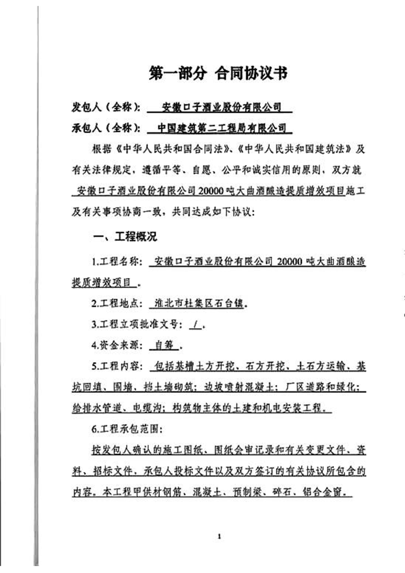 【合同】安徽口子酒业股份有限公司酒酿造提质增效项目建筑工程施工合同