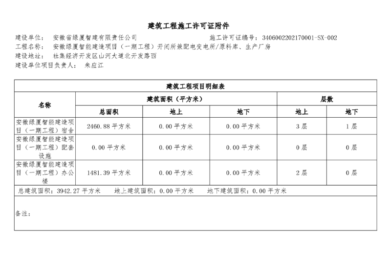 安徽绿厦智能建造项目(一期工程)建筑工程施工许可证