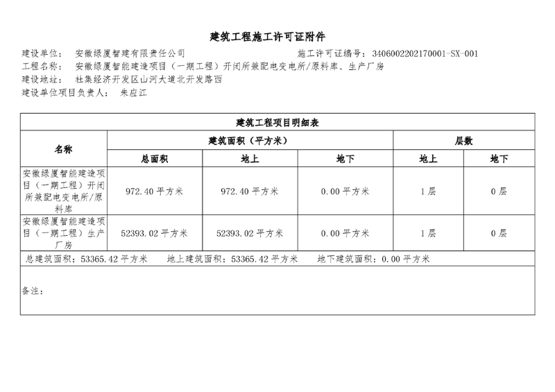 安徽绿厦智能建造项目(一期工程)施工许可证