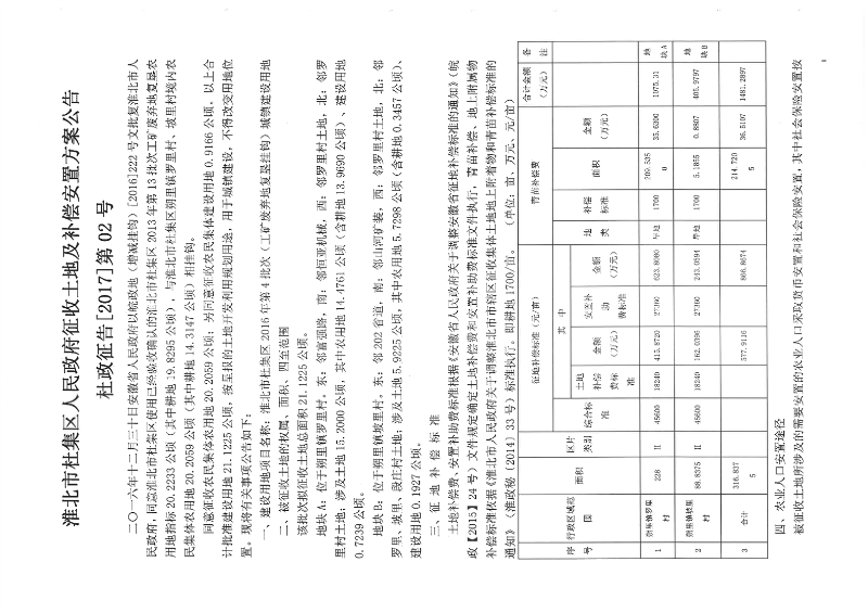 淮北市杜集区人民政府征收土地及补偿安置方案公告