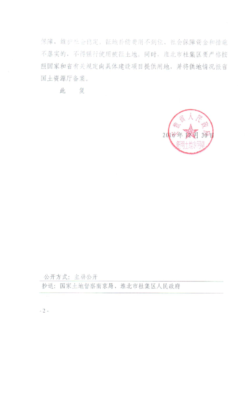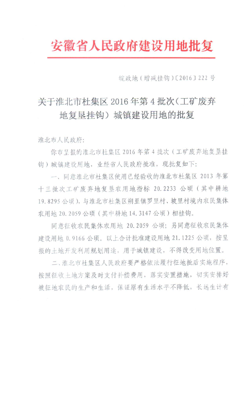 关于淮北市杜集区2016年第4批次(工矿废弃地复垦挂钩) 城镇建设用地的批复