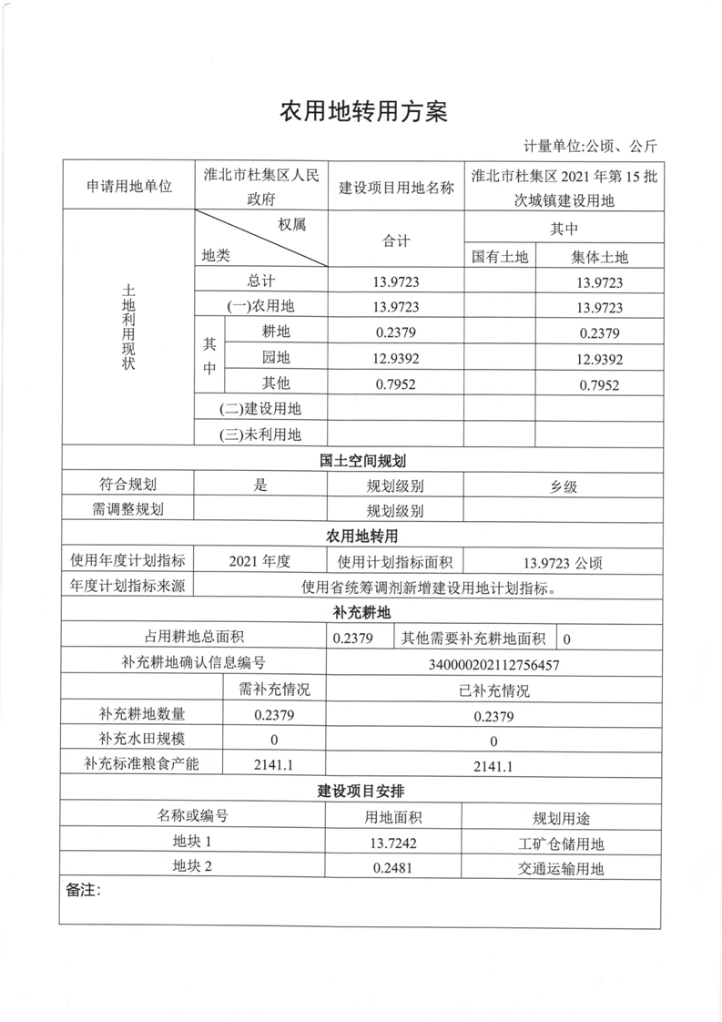 杜集区2021年第15批次城镇建设用地农用地转用方案