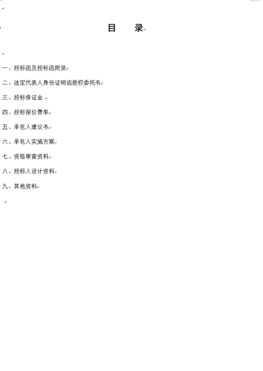 提问:目录中一至九材料名称与后续分项投标内容不相符,请明示投标文件格式