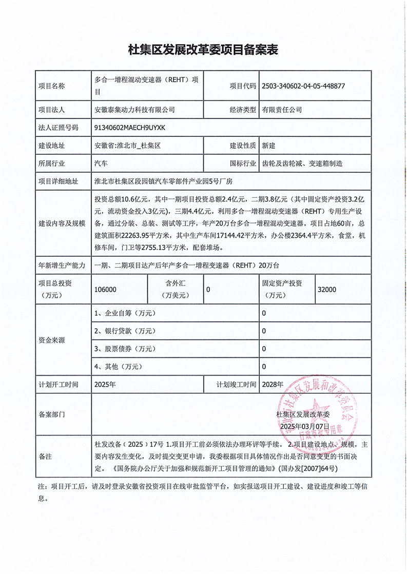 2025年 17号 多合一增程混动变速器(REHT)项目